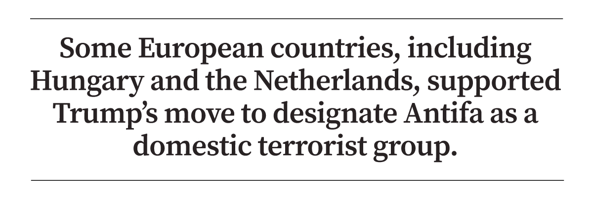 Some European countries, such as Hungary and the Netherlands, supported Trump’s move to designate Antifa as a domestic terrorist group.