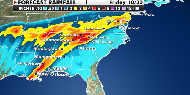 Forecast rainfall amounts of Hurricane Zeta. (Fox News)